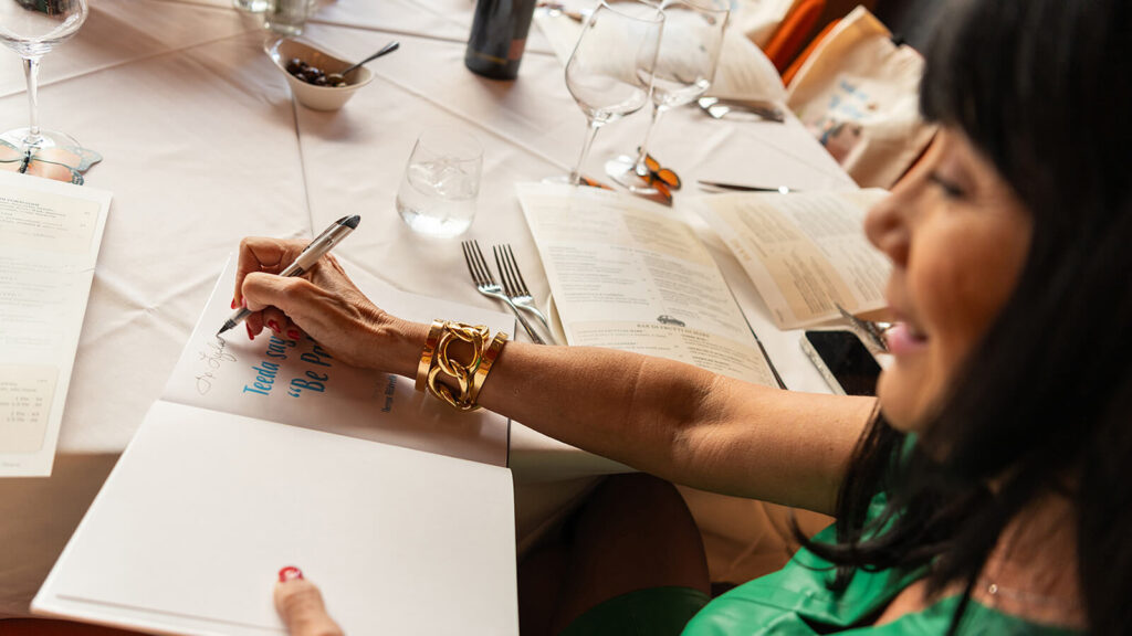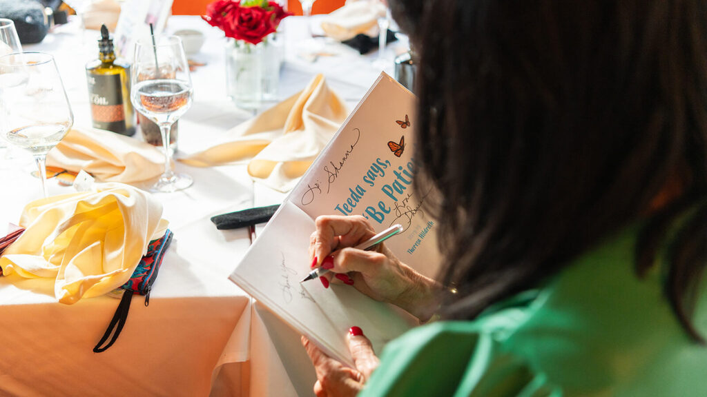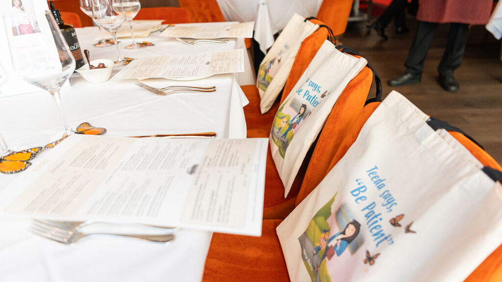 Guests were treated to a beautifully curated dining experience featuring Bari Ristorante’s signature dishes. Each attendee also received a custom gift bag featuring Teeda Says, “Be Patient”, filled with thoughtful goodies including mugs, butterfly earrings, and other keepsakes inspired by the book’s message.