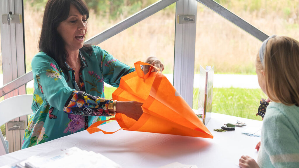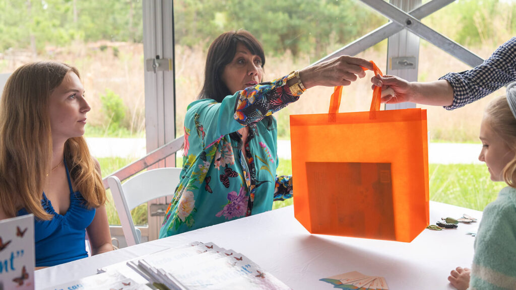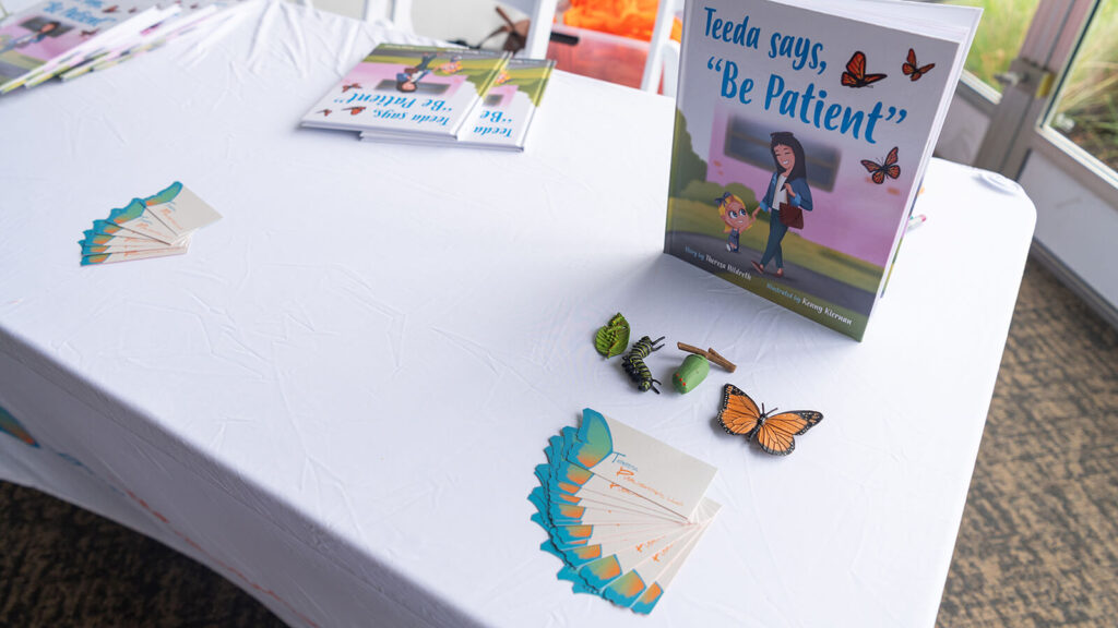 Throughout the event, Theresa actively engaged with families by reading her book aloud to children, hosting book giveaways, and sharing the inspiration behind the story. Teeda Says, “Be Patient” follows her granddaughter Audrey as she brings butterfly chrysalises to school and learns that transformation takes time. This message came to life at March for Monarchs as children witnessed, learned about, and celebrated the monarch butterfly’s remarkable journey.